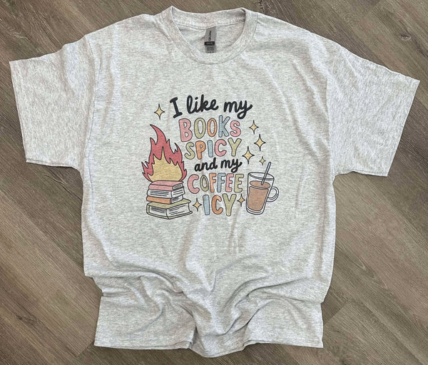 β I Like My Books Spicy and My Coffee Icy Tee β Book Lover Graphic Shirt