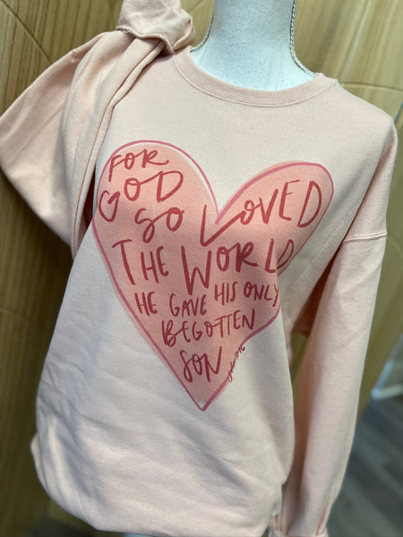 John 3:16 Heart Sweatshirt – Sublimated on Jerzees Blush