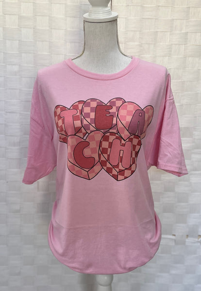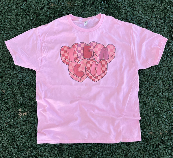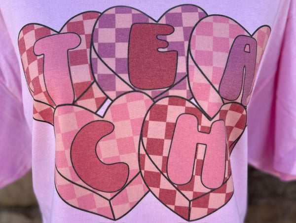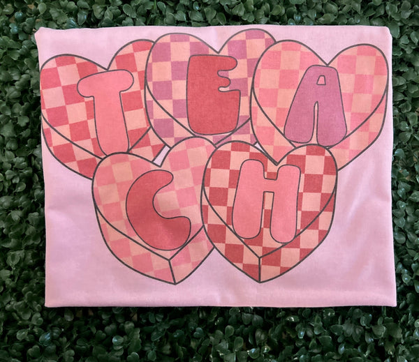 Checkered Hearts T E A C H on Pink