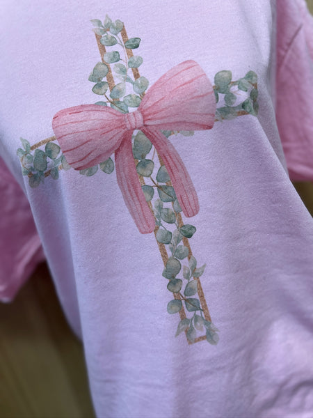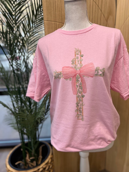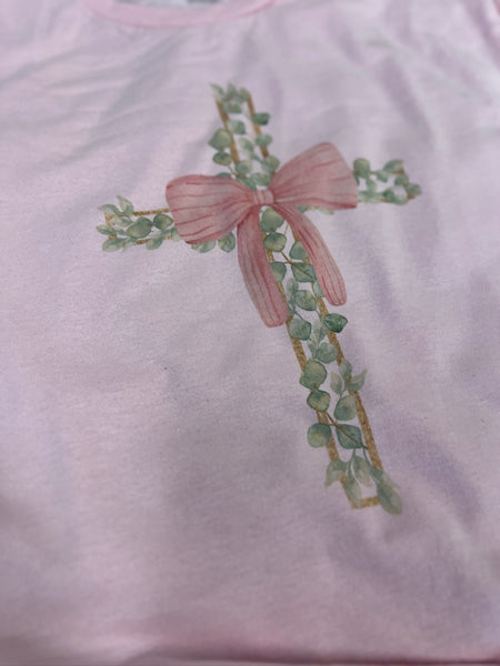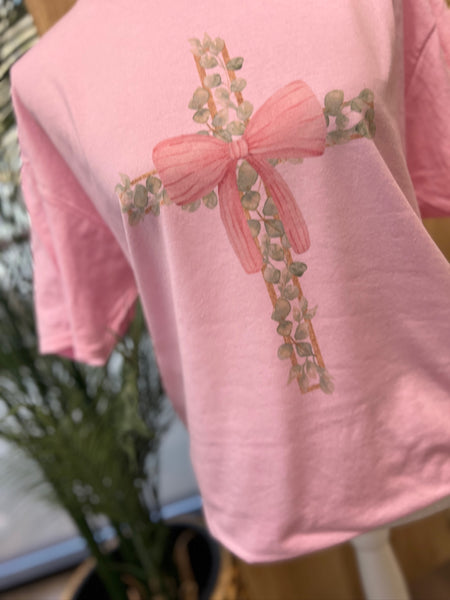 Floral Cross Bow Easter Tee – Pink