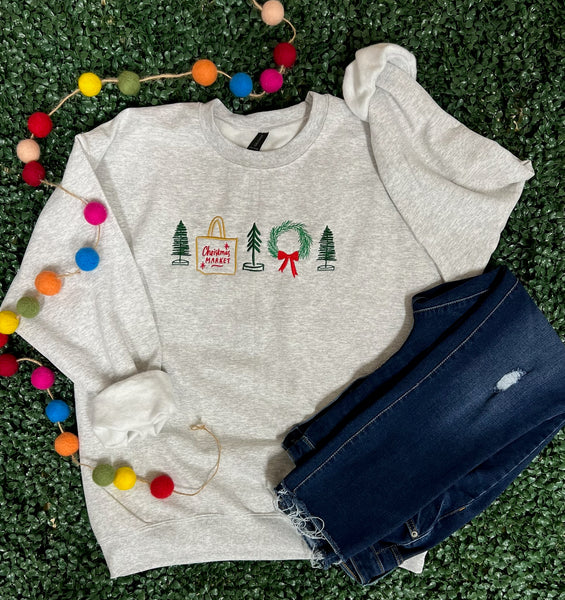Christmas Market Embroidered Sweatshirt โ Ash Gray ๐