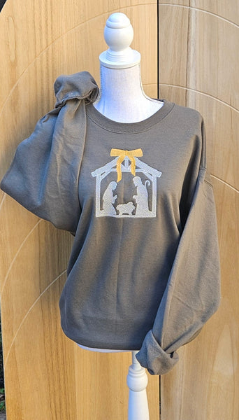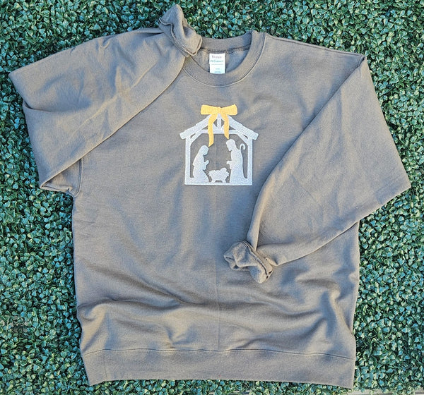 Nativity Scene Embroidered Sweatshirt – Fatigue Green