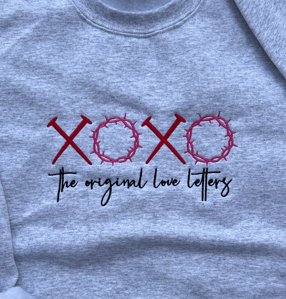 XOXO “The Original Love Letters” Embroidered Sweatshirt – Ash Gray