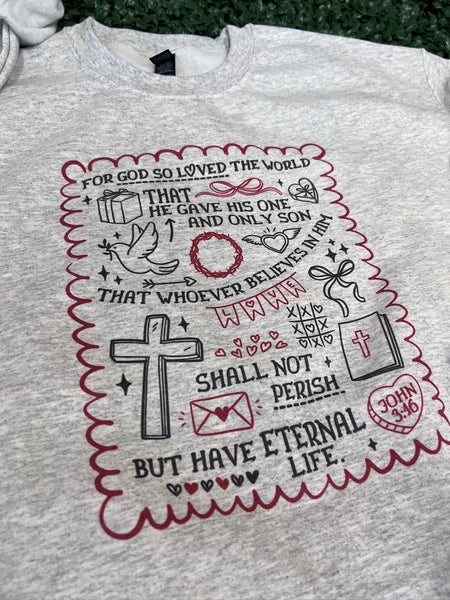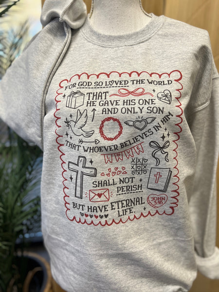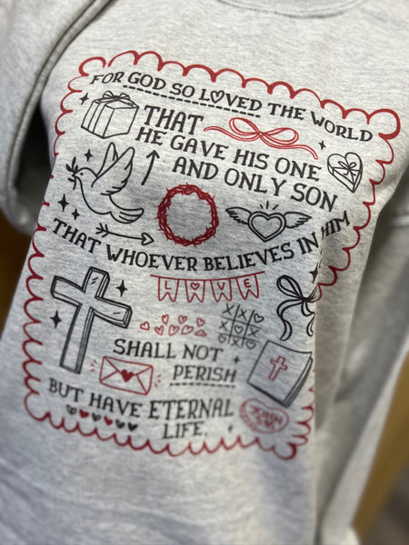 ❤️ John 3:16 Valentine Sweatshirt or T-Shirt – Ash Gray | Sublimated Christian Apparel ❤️