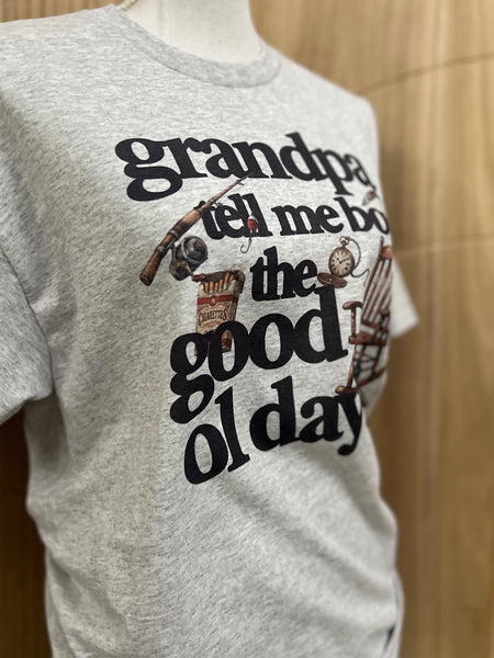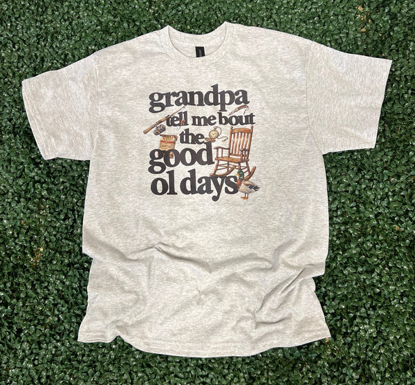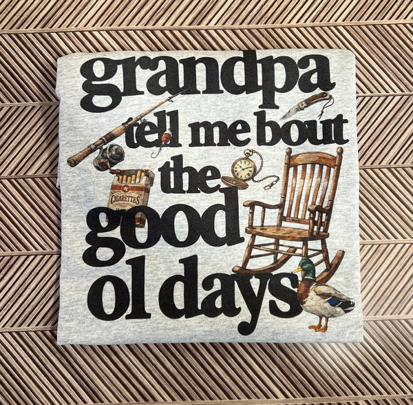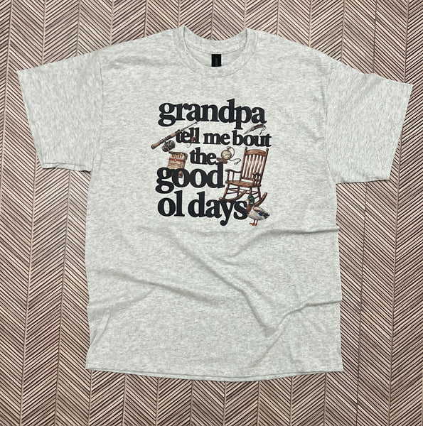 Grandpa, Tell Me ’Bout the Good Ol’ Days Sublimated Tee or Sweatshirt – Ash Gray