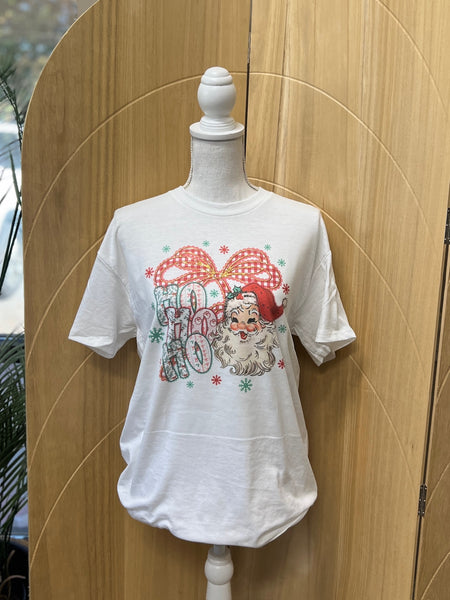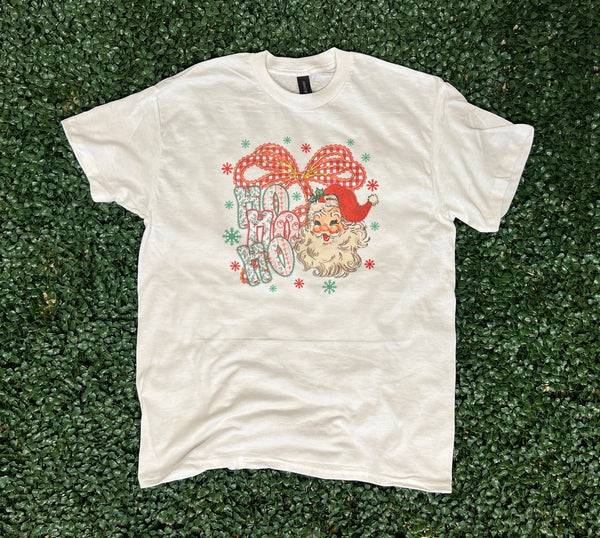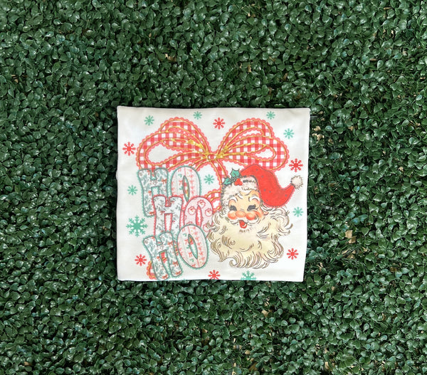 Design: Retro Santa with “Ho Ho Ho” and gingham bow