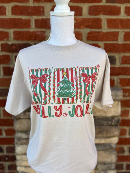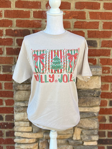 Get in the festive spirit with our “Holly Jolly” Christmas Tee! Featuring a cheerful design with red and green stripes, bows, and a Christmas tree centerpiece, this tee is the perfect mix of classic holiday charm and playful style. Whether you’re decking the halls, wrapping gifts, or attending a Christmas party, this shirt will keep you looking merry and bright!
