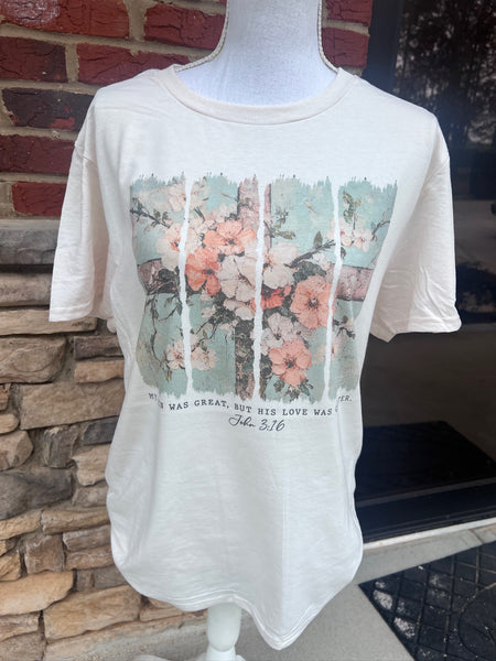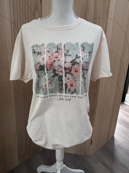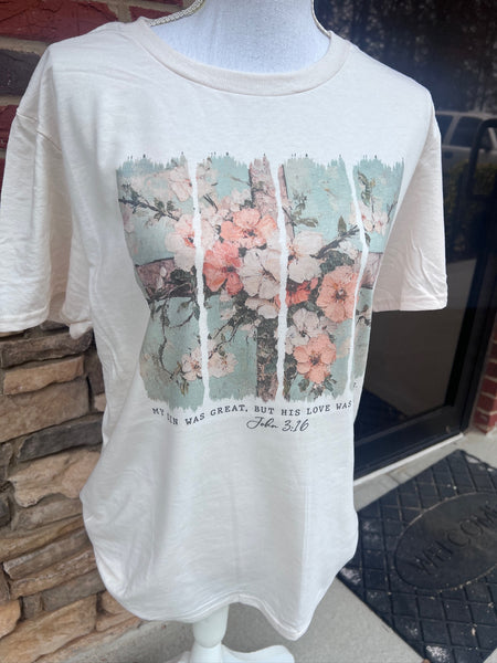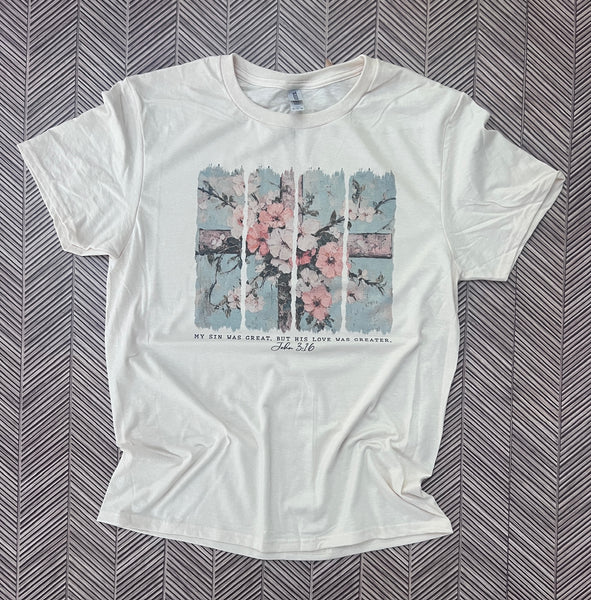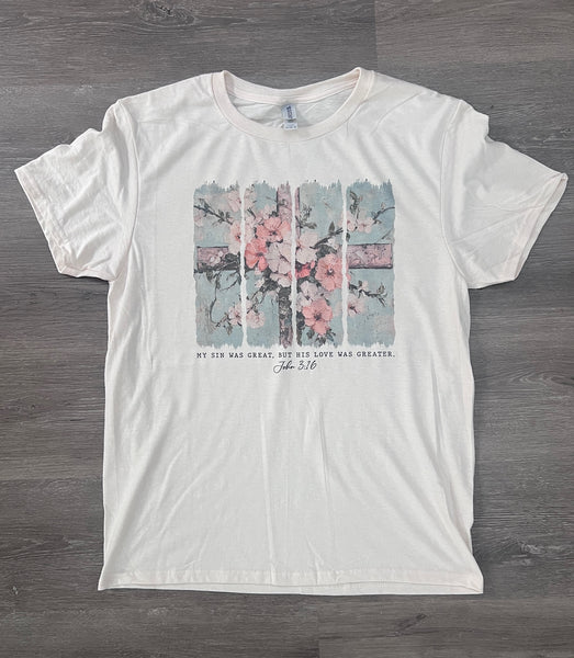 My Sin Was Great, But His Love Was Greater Tee | Cream