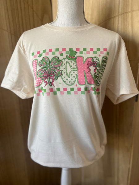 Lucky Shamrock Graphic Tee – Sublimated on Cream