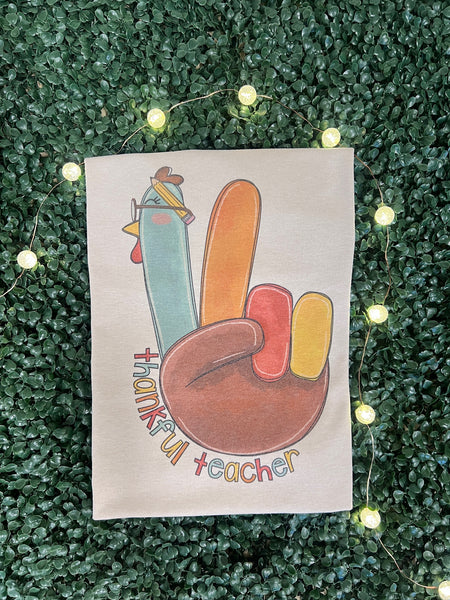 Thankful Teacher Peace Hand Tee 🦃✌️
